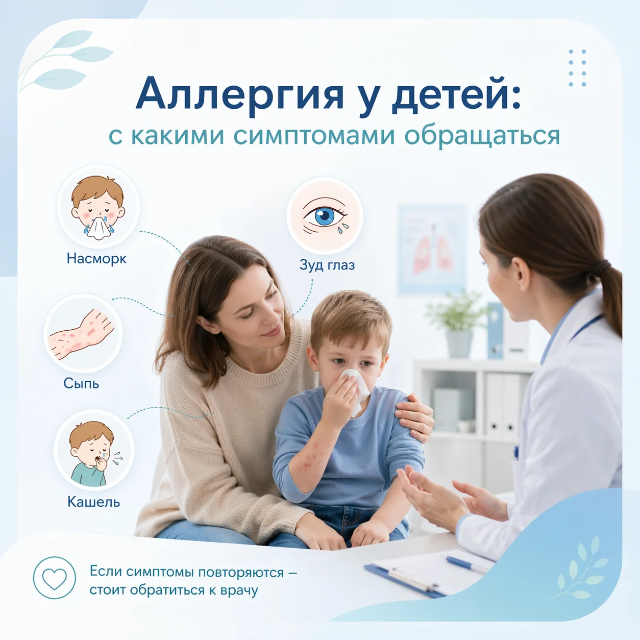 Ниже — ориентиры для родителей: какие симптомы чаще приводят к аллергологу, какие наблюдения реально помогают врачу, и что стоит взять на приём.